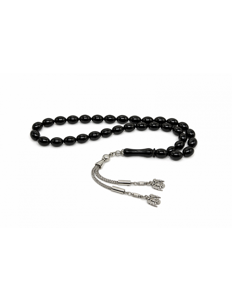 Oltu Taşı Yumurta Kesim Sade Püsküllü Tesbih